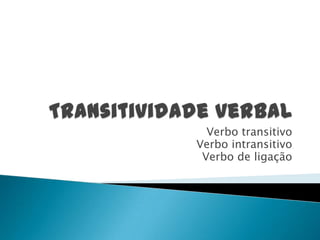 O documento classifica e explica diferentes tipos de verbos em português: 1) Verbos significativos podem ser transitivos ou intransitivos, dependendo se exigem ou não um complemento; 2) Verbos transitivos podem ser diretos ou indiretos; 3) Verbos de ligação ligam o sujeito a uma qualidade ou estado.