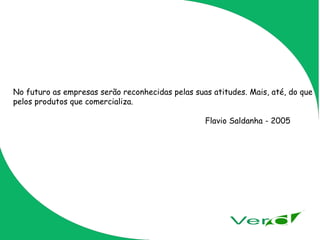 No futuro, as empresas serão reconhecidas por suas atitudes e não apenas por seus produtos. A Verd é uma agência de marketing focada no mercado orgânico e sustentável. Sua missão é fornecer soluções criativas que excedam as expectativas dos clientes de forma honesta e prática.