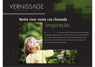O documento apresenta o Vernissage Residence & Club, um empreendimento imobiliário focado na qualidade de vida, localizado em Jacarepaguá, cercado por natureza e com infraestrutura completa. Com diversas opções de apartamentos e áreas de lazer, o local oferece um estilo de vida convidativo e acessível. O projeto enfatiza a convivência familiar e o contato com a natureza em um ambiente planejado para o bem-estar dos moradores.