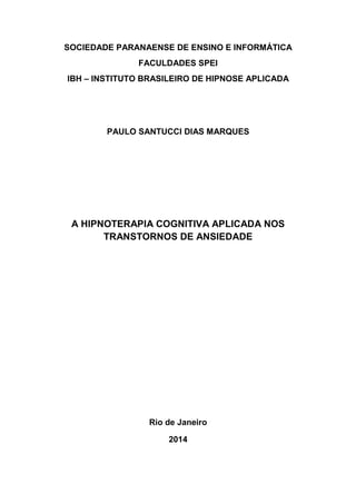 Este documento discute a aplicação da hipnoterapia cognitiva nos transtornos de ansiedade. Em três frases: