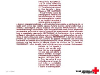 O documento discute a gripe A (H1N1) e as medidas de prevenção, proteção e preparação recomendadas pela Cruz Vermelha Portuguesa. Detalha os sintomas da gripe A, como se transmite, período de contágio e medidas básicas como lavar as mãos e isolamento para quem tem sintomas. Também fornece estatísticas sobre casos confirmados e mortes e discute a importância de planos de contingência e estoque de suprimentos.