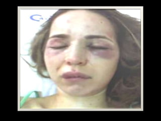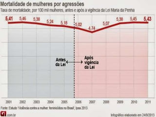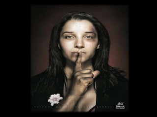 O documento discute violência doméstica, definindo-a como controle e dominação em relacionamentos. Agressores tendem a ser autoritários, irritadiços e alcoólicos. Vítimas incluem crianças, mulheres e idosos. Embora a Lei Maria da Penha proteja vítimas, muitas delas ainda têm medo de denunciar devido a ameaças ou dependência financeira.