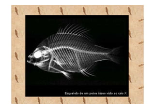 O documento descreve as principais características dos peixes. Os peixes são vertebrados aquáticos que respiram por brânquias e se reproduzem de forma interna ou externa. Eles são classificados em peixes cartilaginosos e ósseos.
