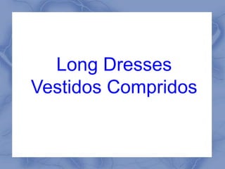 O documento lista vários vestidos compridos com suas respectivas referências, cores, tamanhos e preços variando de 11€ a 24€. As peças estão disponíveis para encomenda através do site ou e-mail da loja de moda BDivine Fashion.