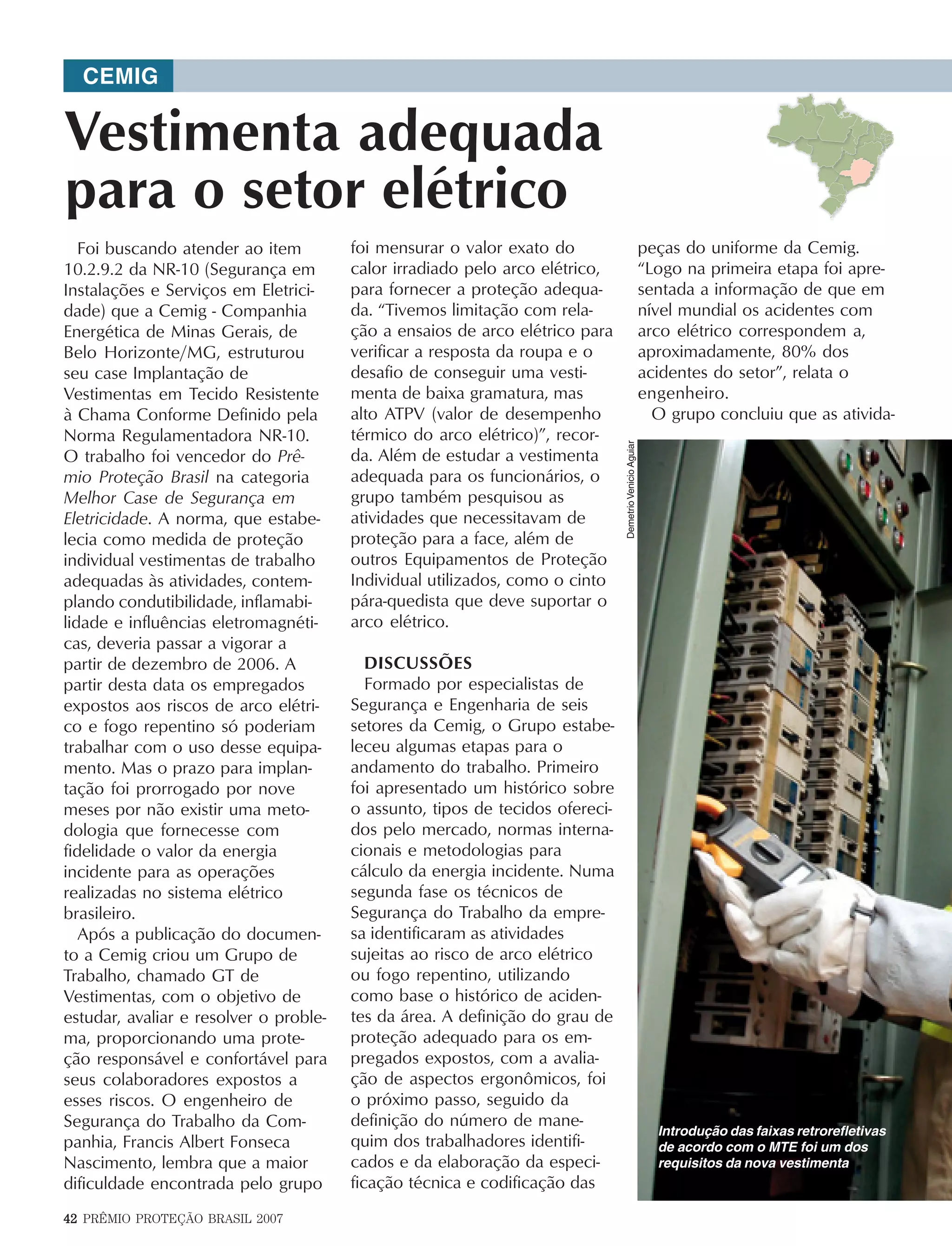 O documento descreve o caso da CEMIG que projetou uniformes resistentes a chamas para seus funcionários expostos a riscos de arco elétrico de acordo com a NR-10. Um grupo de especialistas estudou as atividades de risco e especificações técnicas para os uniformes. Os novos uniformes fornecem melhor proteção térmica e segurança aos trabalhadores expostos a riscos de arco elétrico.