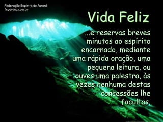 O texto discute a importância de dedicar tempo diariamente à vida espiritual, questionando quanto tempo reservamos para oração, leitura espiritual ou ouvir palestras, em comparação ao tempo gasto com outras atividades diárias. Também argumenta que o homem não é apenas o corpo físico, mas principalmente um ser espiritual que requer atenção espiritual para cumprir bem suas tarefas na Terra, assim como o corpo precisa de cuidados para viver.