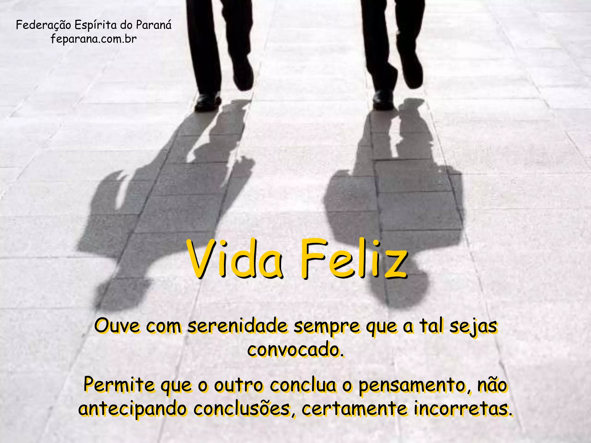 O documento fornece três conselhos para uma vida feliz: ouça os outros com paciência e sem julgamentos precipitados; busque entender diferentes pontos de vista mesmo quando expressos de forma imperfeita; e dialogue sem azedume, procurando o entendimento em vez de acusações.