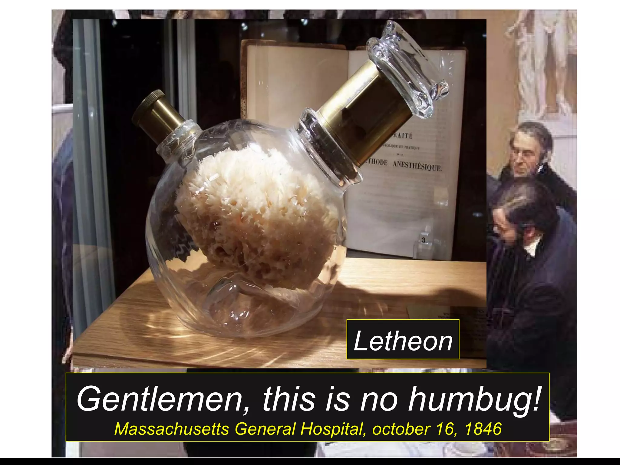 Gentlemen, this isno humbug! Massachusetts General Hospital, october 16, 1846 Letheon