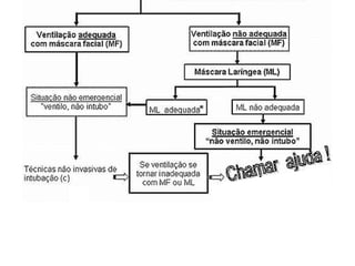 PROCEDIMENTO DISPOSITIVOFLUXO de O2 L / min CONCENTRAÇÃO DE OXIGENIO Com oxigênio suplementar AMBU com reservatório 10-15 90-100% Máscara com reservatório sem recirculação 10-15 90-100% Com válvula de demanda De acordo com a fonte 90-100%