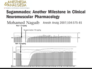 Efficacy of sugammadexfor the reversal of rocuronium-induced blockade: a pooled analysis of dose-response studies - Holanda Pharmacokinetics of rocuronium and sugammadex in patients with normal and impaired renal function. – Holanda Reversal of profound rocuronium-induced neuromuscular blockade is significantly faster with sugammadex than with neostigmine- EUA Sugammadex reversal of profound rocuronium-induced neuromuscular block is significantly faster than spontaneous recovery from succinylcholine- EUA A prospective randomised double blind study to evaluate the effect of infusion of amino acid enriched solution on recovery from neuromuscular blockade produced by vecuronium bromide and atracurium besylate - India Effect of higher than required doses of sugammadex on recovery from rocuronium-induced block in guinea pigs - Escócia Sugammadex (2.0 mg/kg) reverses shallow rocuronium-induced neuromuscular blockade significantly faster than neostigmine (50 g/kg)- Alemanha