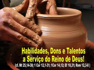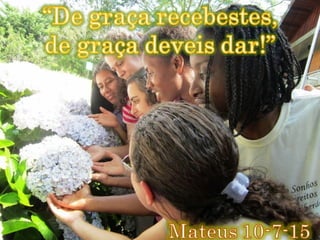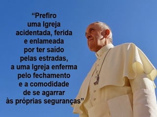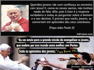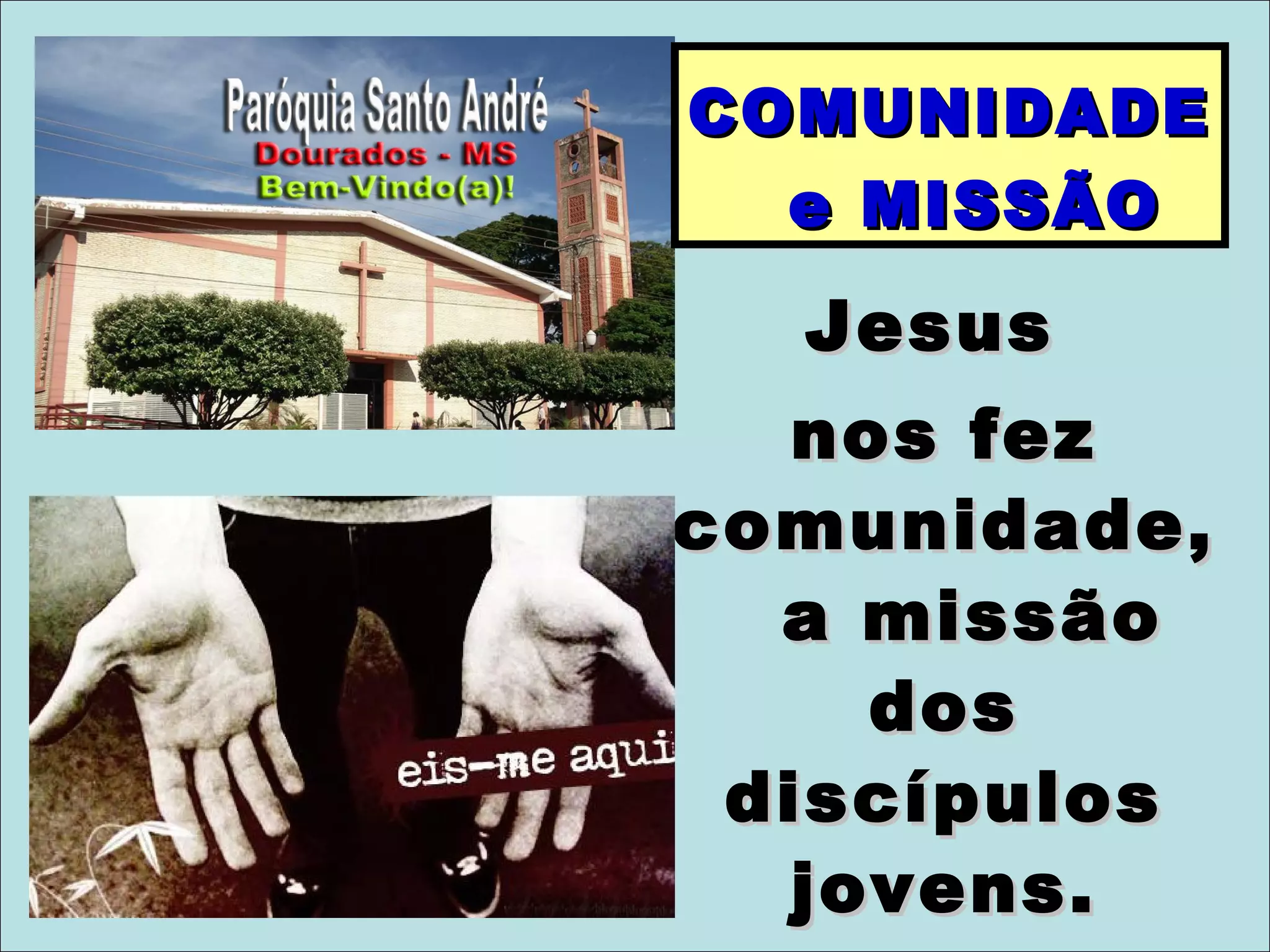 O documento discute a importância da comunidade e da missão segundo o ensinamento de Jesus. Jesus formou uma comunidade de discípulos para continuar sua missão de anunciar o Reino de Deus. A comunidade cristã é essencial para viver a fé e cumprir a tarefa de evangelizar.