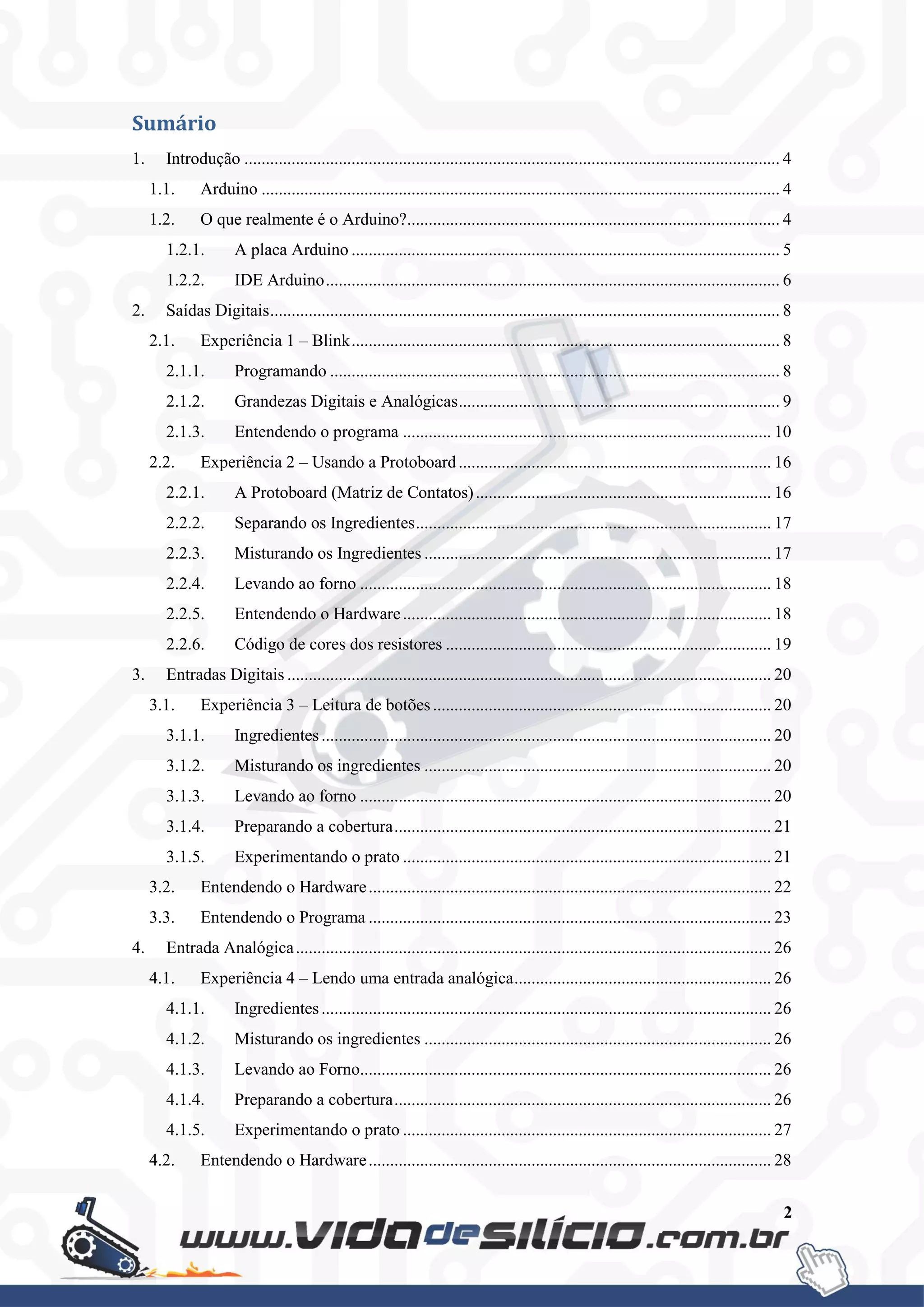 Este documento fornece instruções passo-a-passo para realizar experiências usando um Arduino. A primeira experiência ensina como fazer um LED piscar ligando e desligando o pino digital 13. Outras experiências ensinam como ler entradas digitais e analógicas e controlar a intensidade de um LED usando PWM.