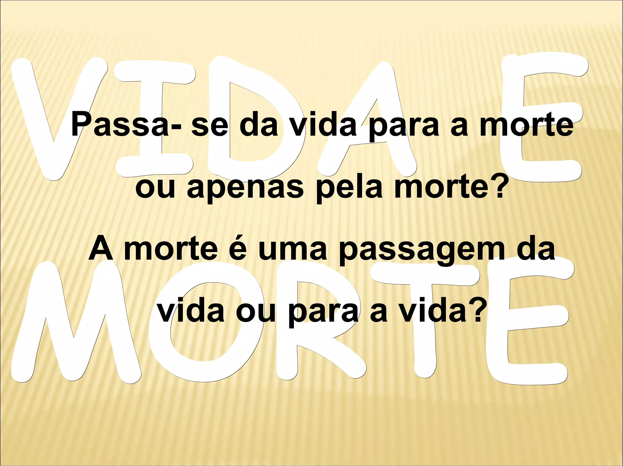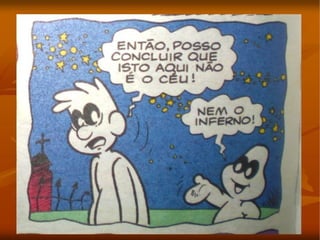O documento discute as perspectivas de diferentes tradições religiosas sobre a morte, incluindo a passagem da vida para a morte e o que acontece após a morte. As tradições explicadas incluem o Cristianismo, Islamismo, Hinduísmo, Budismo, Candomblé e Espiritismo. O documento também descreve rituais fúnebres de culturas como o Egito Antigo, índios Kaingang e Madagascar.