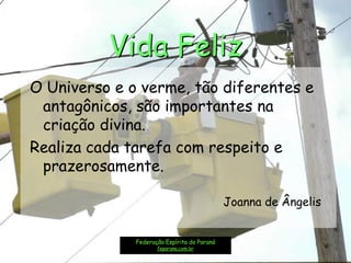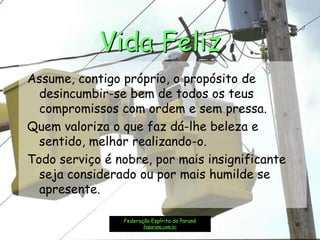 O documento discute a importância de assumir compromissos com calma e ordem, valorizar o trabalho realizado, e realizar cada tarefa com respeito e prazer, independente da importância percebida. Ele também menciona que todas as partes da criação divina, incluindo o Universo e os vermes, são importantes.