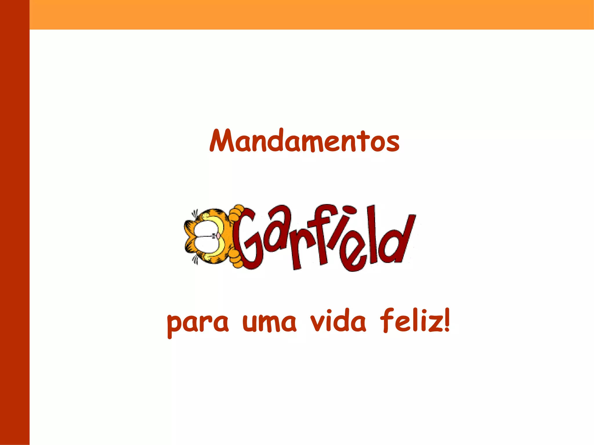 O documento fornece mandamentos para uma vida feliz, enfatizando a importância de comer apenas quando tiver fome, dormir o suficiente, abraçar e beijar muito, pedir ajuda quando precisar, perdoar os próprios erros, agradecer sempre, não perder tempo em discussões inúteis, cuidar dos amigos, expressar a individualidade, cometer novos erros para aprender, simplificar a vida, aproveitar o descanso, acreditar no amor e ser feliz.