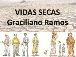 O documento resume os principais personagens e capítulos da obra Vidas Secas, de Graciliano Ramos. A história acompanha uma família nordestina de retirantes que vivem situações de extrema pobreza e dificuldades durante uma seca na caatinga.