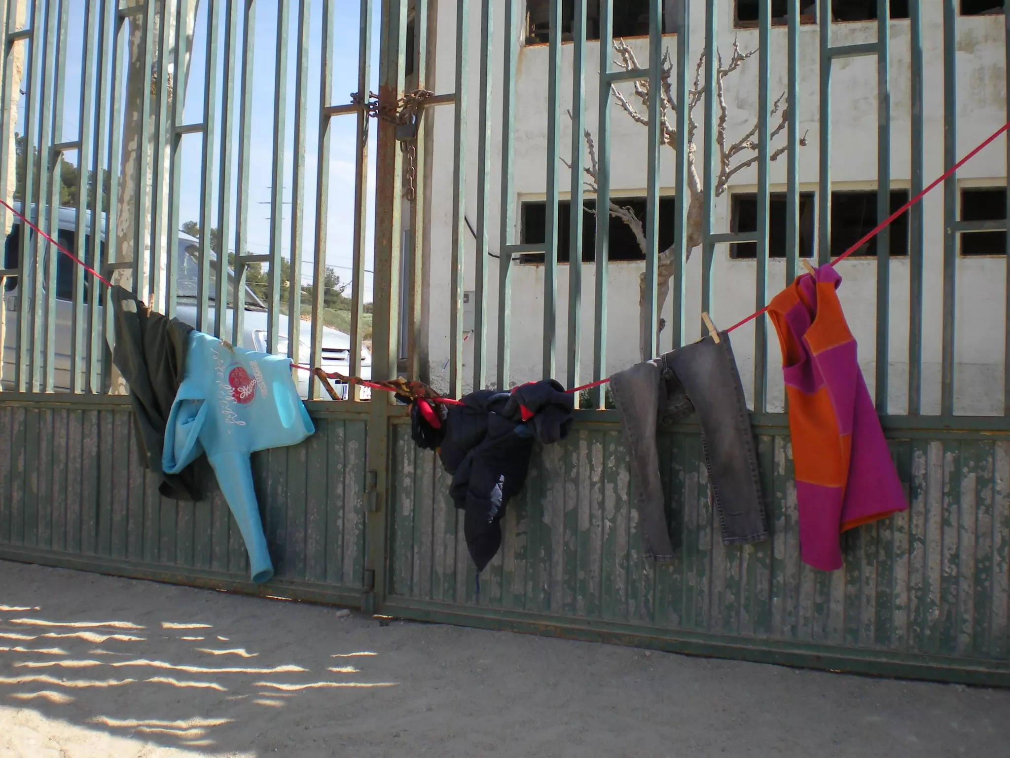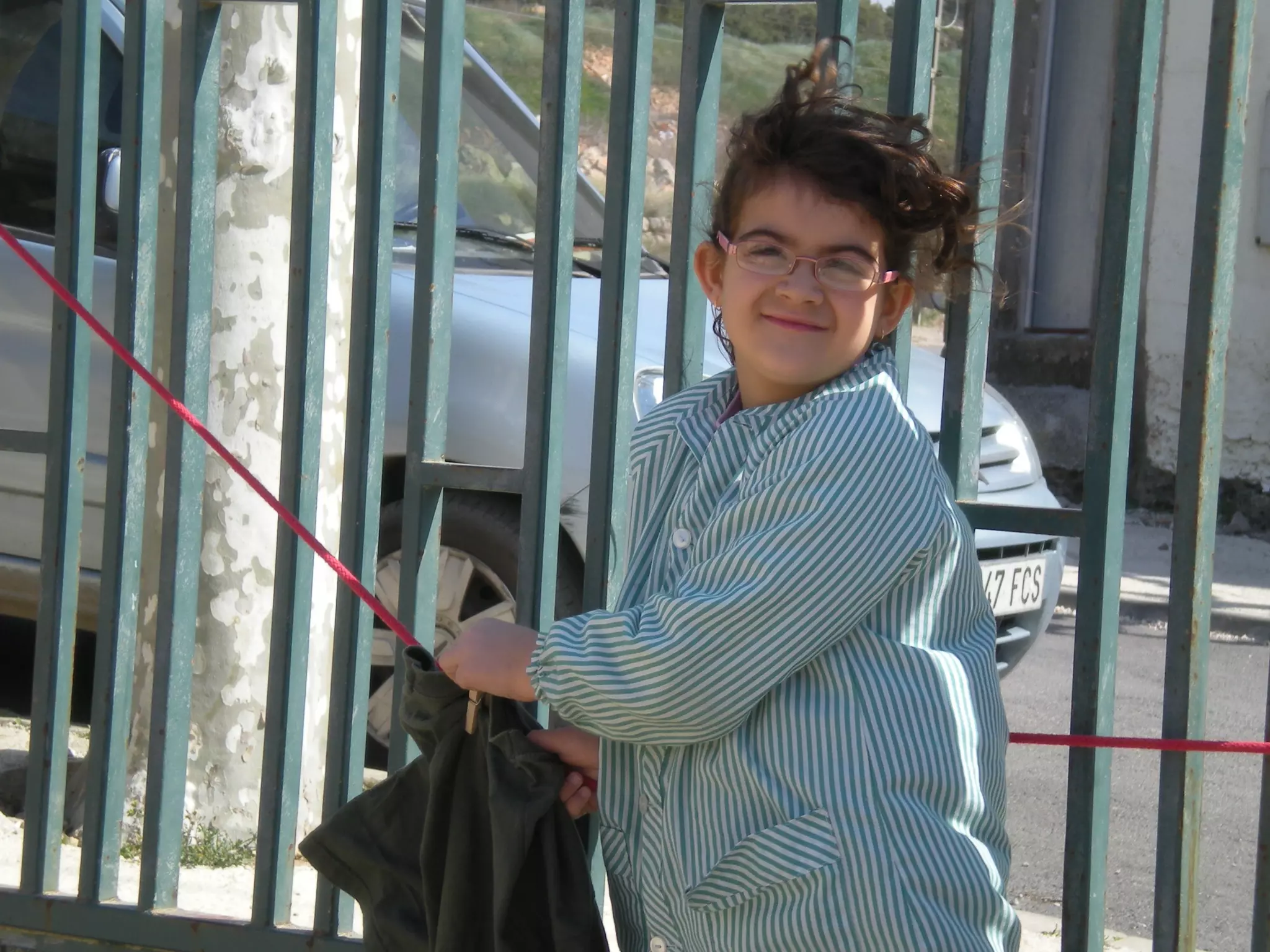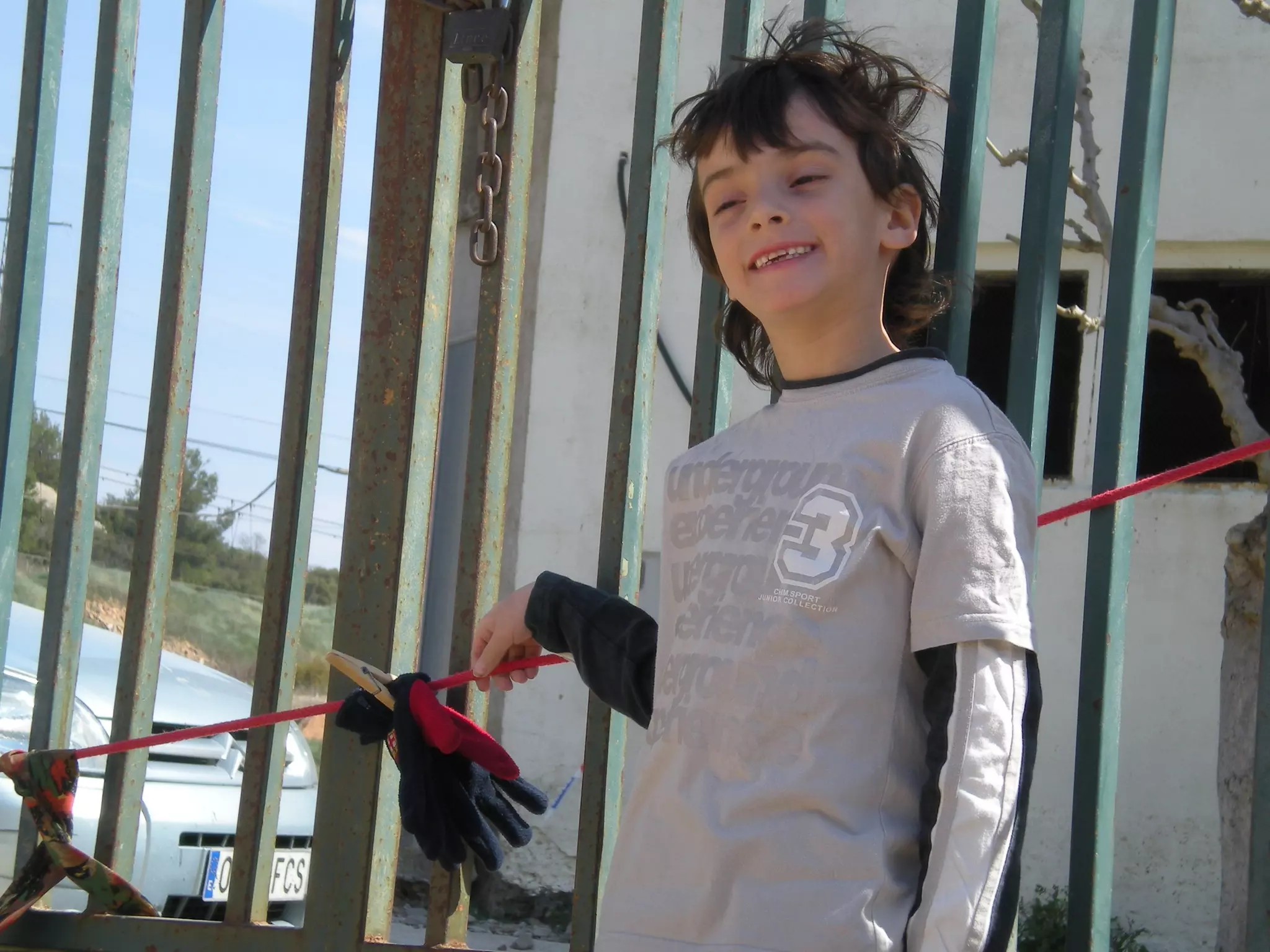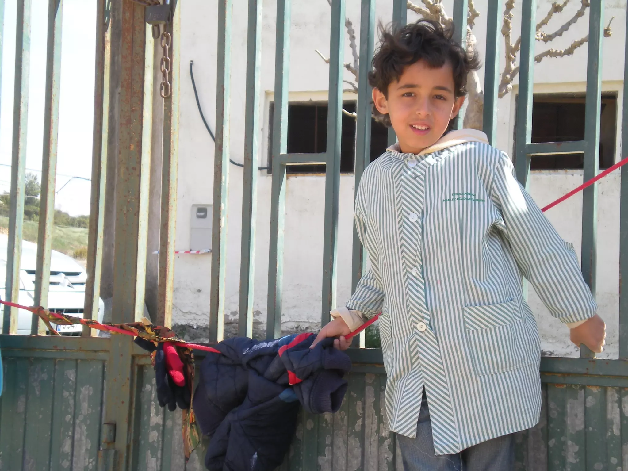 A criança repete "É meu!" sete vezes, indicando que está reivindicando posse de algo, possivelmente uma peça de roupa em uma linha de roupas.