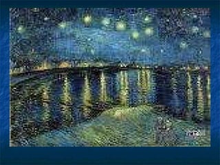 Vincent van Gogh nasceu na Holanda em 1853 e começou a desenhar desde cedo. Ele estudou arte na academia de Bruxelas e foi influenciado por pintores como Millet e Monet. Van Gogh desenvolveu seu próprio estilo impressionista em Paris na década de 1880 e produziu muitas obras expressivas enquanto sofria de depressão na França. Apesar de ter recebido elogios por algumas exposições, Van Gogh cometeu suicídio em 1890 aos 37 anos.