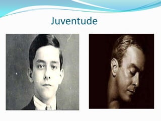 Este poema descreve a introspecção do poeta e sua observação das nuvens, árvores e sua própria alma, onde sente a dor da terra. O documento também inclui poemas sobre uma mulher que passa e sobre operários construindo casas sem saber que estavam construindo templos sem religião ou que sua liberdade na construção era na verdade escravidão. O documento resume a vida e obra do poeta brasileiro Vinicius de Moraes, desde sua juventude até se tornar um cronista e prosador.