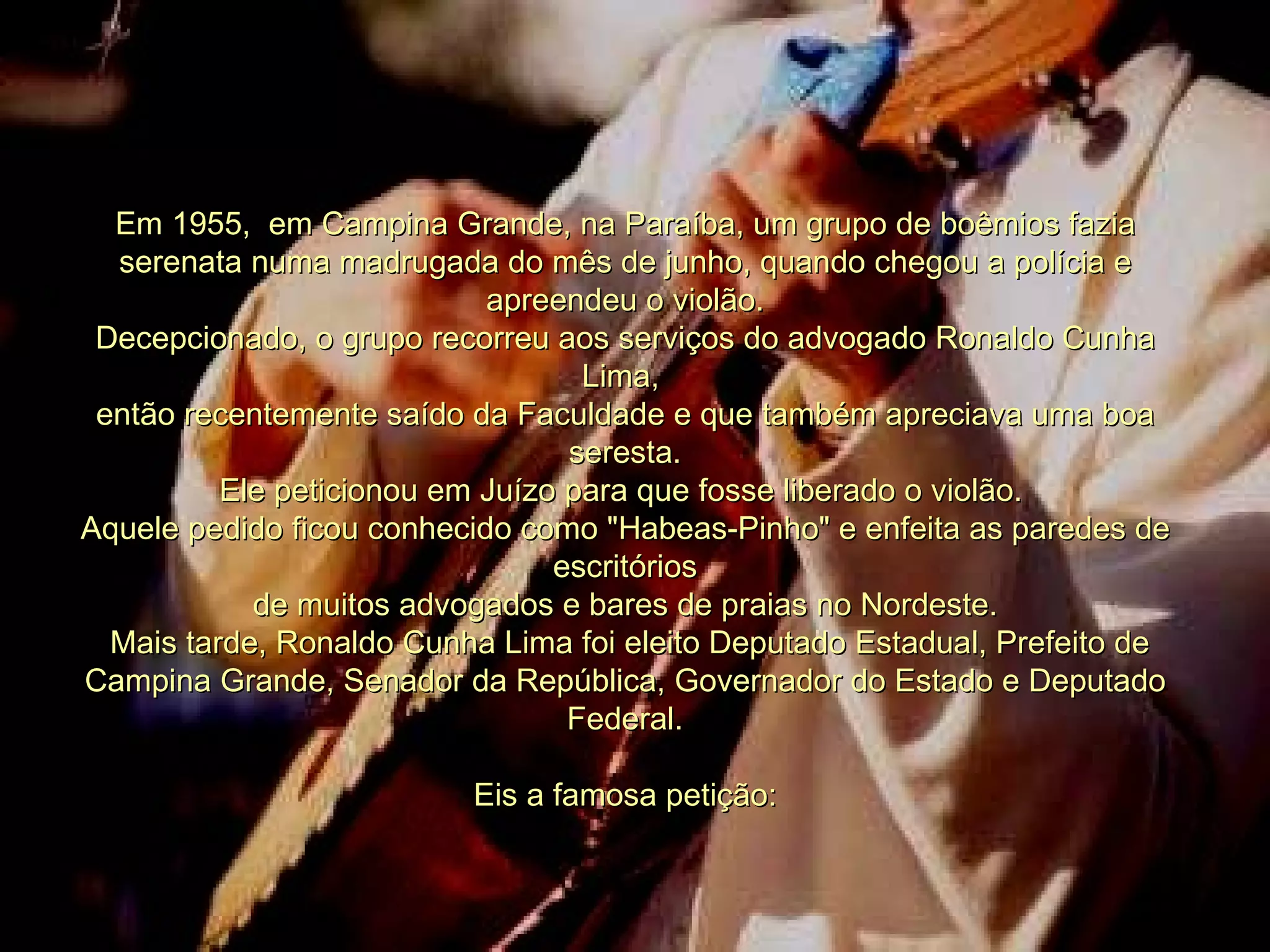 Em 1955, um grupo de amigos teve seu violão apreendido pela polícia em Campina Grande, Paraíba, após fazerem serenata. O advogado recém-formado Ronaldo Cunha Lima peticionou ao juiz pela liberação do instrumento musical em uma petição poética que ficou conhecida como "Habeas-Pinho". O juiz deferiu o pedido também em versos, ordenando a devolução do violão.