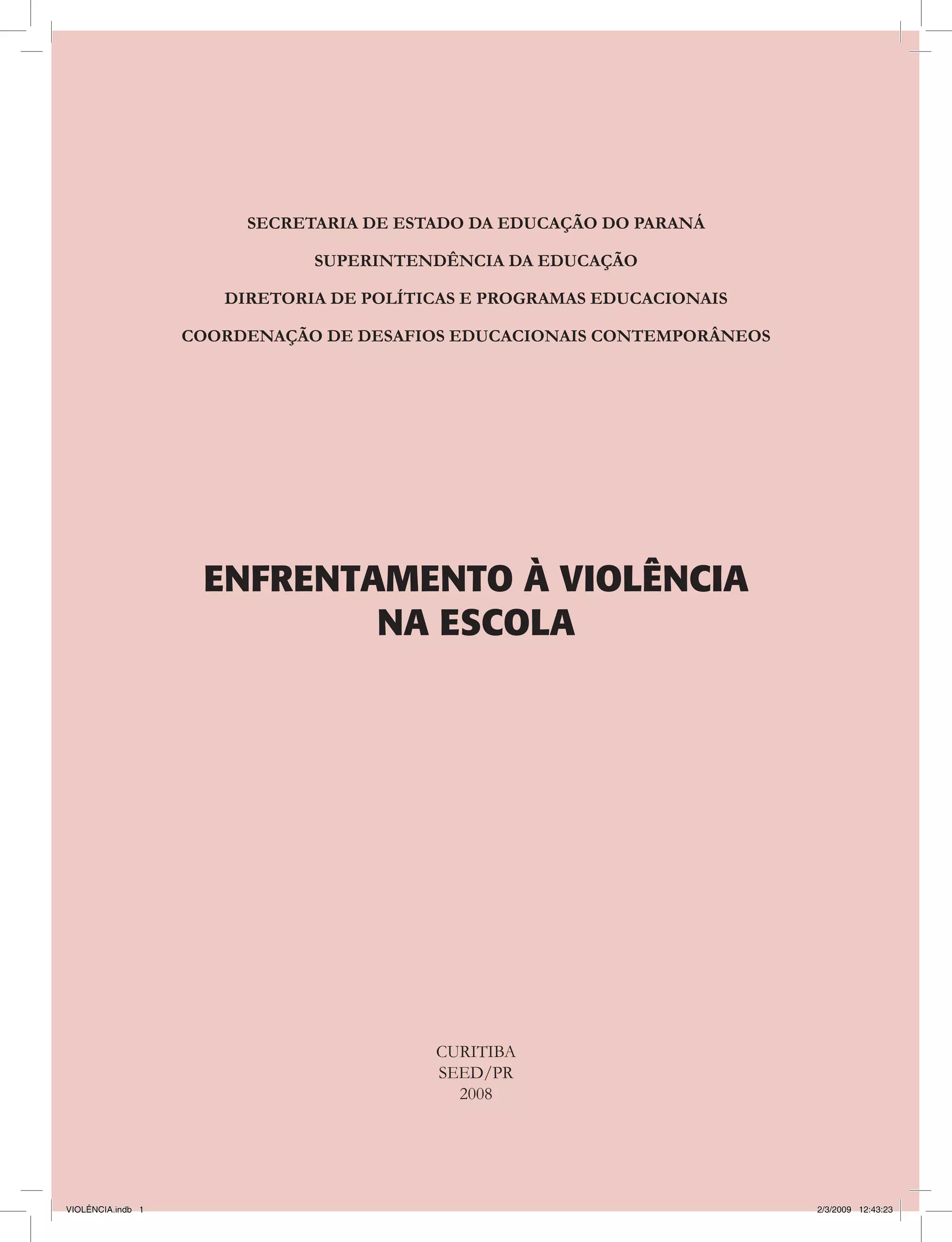 O documento aborda o enfrentamento à violência nas escolas do Paraná, destacando a complexidade do tema e suas raízes sociais. Ele propõe uma reflexão crítica sobre a violência no ambiente escolar, articulando aspectos sociais, políticos e educacionais, e sugere que a comunidade escolar deve ter um papel ativo na discussão e superação desse problema. A publicação oferece suporte teórico e metodológico para educadores lidarem com a violência, visando um ambiente mais seguro e respeitador para todos os envolvidos.