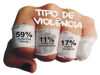O documento discute diferentes tipos de violência, incluindo violência doméstica, física, psicológica e sexual. Ele fornece exemplos de cada tipo de violência e descreve as consequências para as vítimas.
