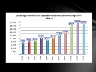 O documento discute diferentes tipos de violência, incluindo violência física, psicológica e doméstica. Ele fornece exemplos de cada tipo de violência e lista recursos de apoio para vítimas de violência doméstica.