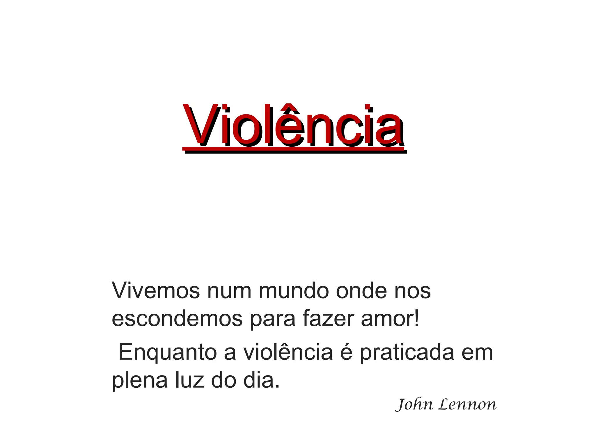 Violência Vivemos nummundo onde nos escondemos para fazer amor! Enquanto a violência é praticada em plena luz do dia. John Lennon