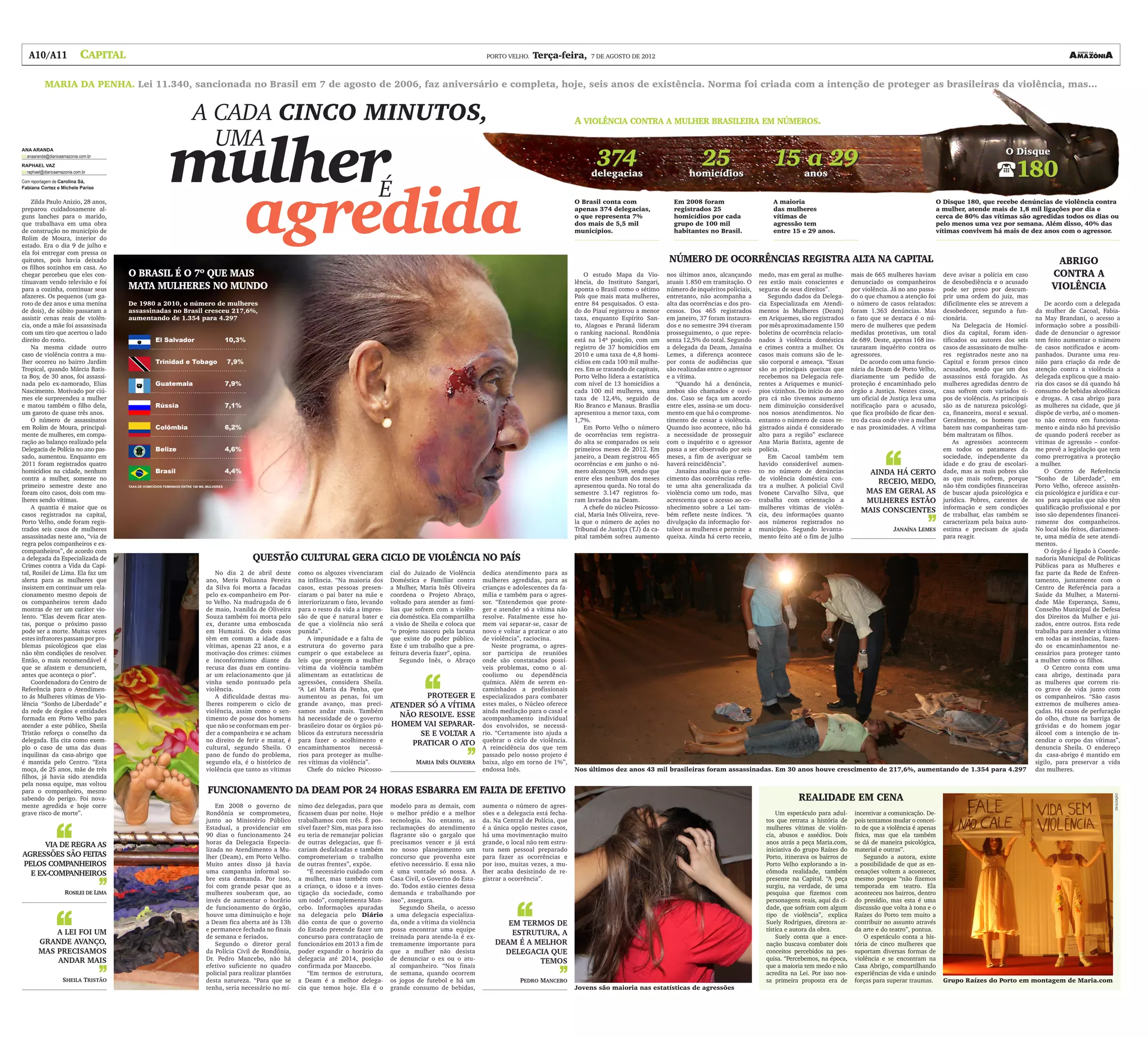 1) A Lei Maria da Penha completa 6 anos no Brasil, mas a violência contra a mulher ainda é alta, com uma mulher sendo agredida a cada 5 minutos.