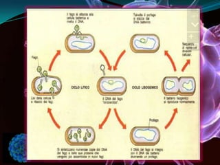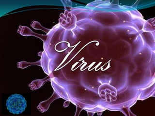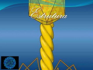O documento fornece informações sobre vírus, definindo-os como estruturas submicroscópicas acelulares que contêm material genético e precisam infectar células para se replicar, causando doenças. Descreve os principais componentes virais, os ciclos de replicação lítico e lisogênico, e discute a evolução e o uso de terapia gênica.