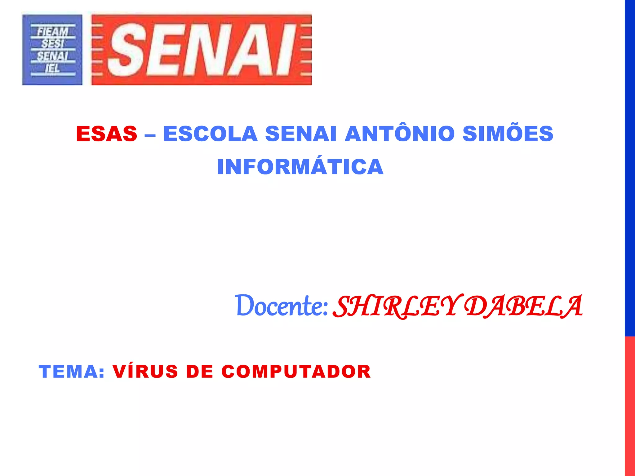 Este documento aborda os vírus de computador, descrevendo sua definição, histórico e formas de contaminação, além de diferenciar hackers de crackers. Também menciona os tipos de vírus, como cavalos de Tróia e vírus de boot, e destaca a importância dos antivírus na proteção contra esses softwares maliciosos. O texto conclui com uma discussão sobre as opções disponíveis no mercado de antivírus, tanto gratuitas quanto pagas.