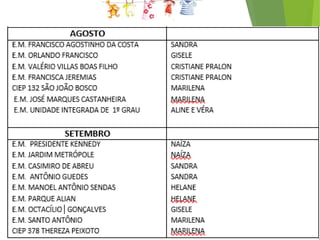 Este documento discute visitas de acompanhamento do trabalho pedagógico realizadas por orientadoras. O objetivo é acompanhar a prática docente de professores do ciclo de alfabetização, tanto aqueles que participam do PNAIC quanto os que não participam. As visitas oferecem apoio, espaço para reflexão, experiências e orientação para melhoria contínua.