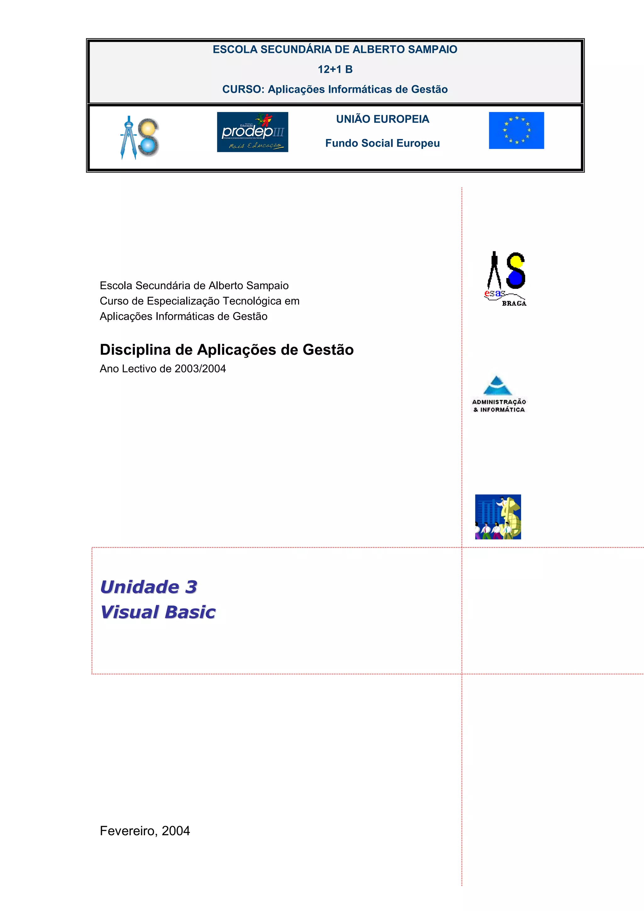 1. Apresentação do Visual Basic 5, incluindo suas janelas principais e como salvar um projeto.