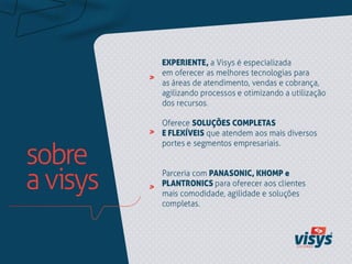 A empresa Visys fornece informações de contato para sua central de atendimento, vendas, pós-vendas e ouvidoria em três números de telefone e endereços de e-mail.