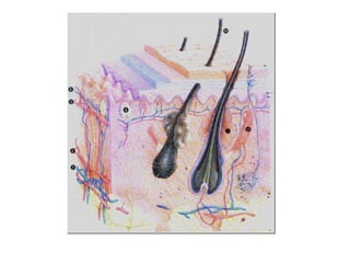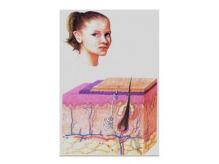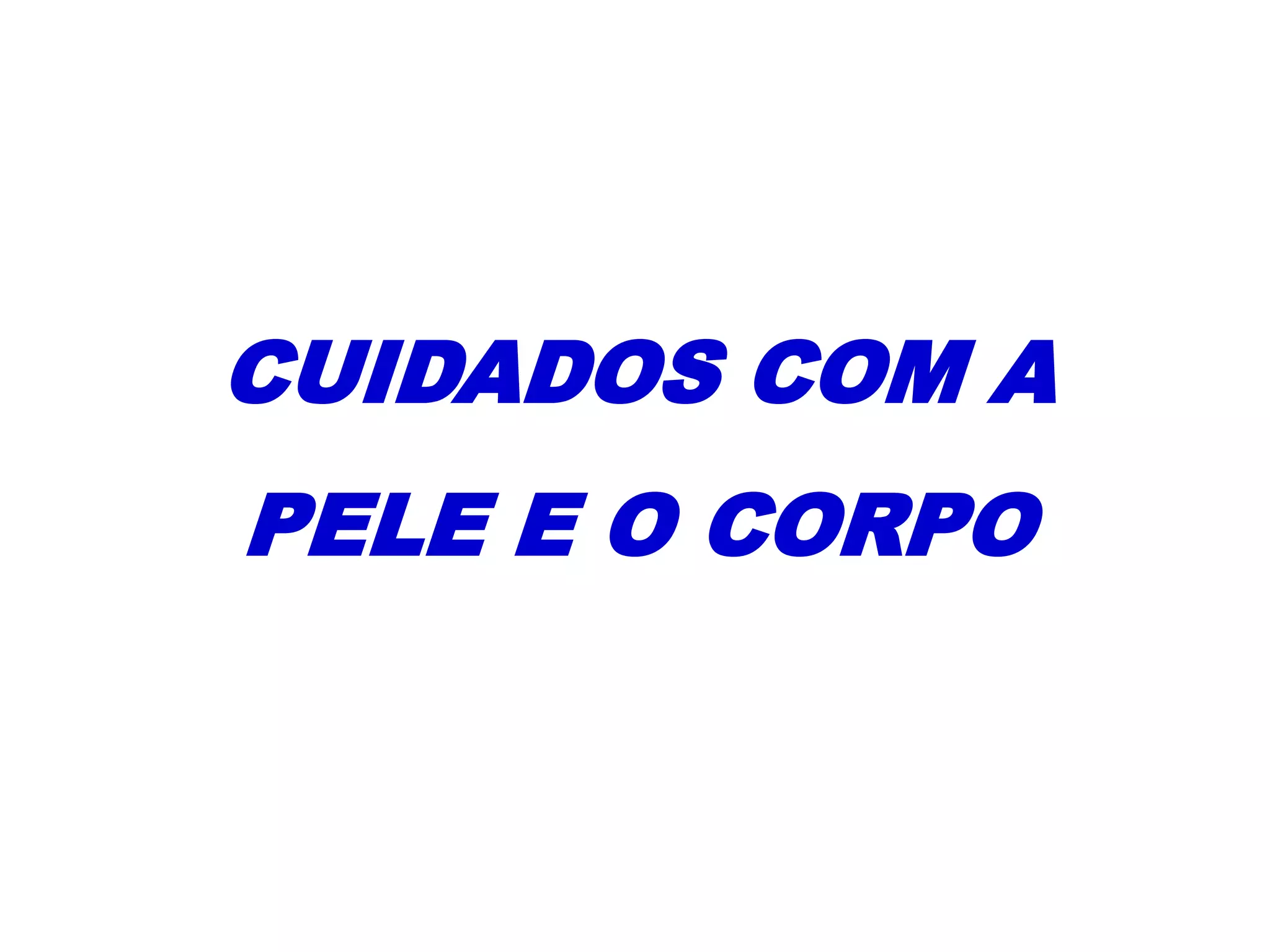 O documento fornece informações sobre cuidados com a pele e o corpo, incluindo a estrutura e funções da pele, fatores que afetam o envelhecimento, cuidados diários recomendados e dicas de higiene pessoal.