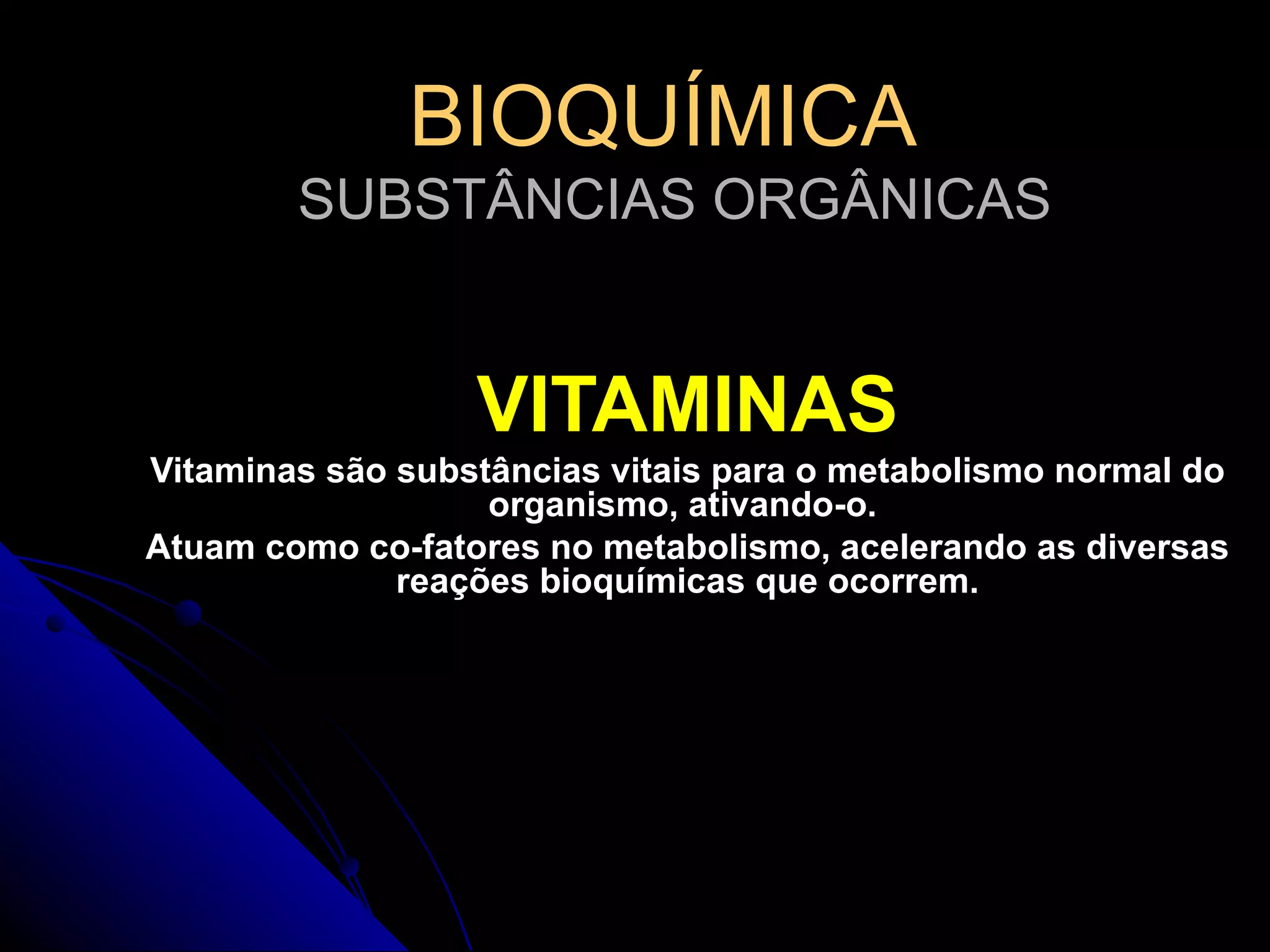 O documento discute vitaminas, substâncias vitais para o metabolismo que não são sintetizadas pelo organismo e precisam ser obtidas através da alimentação. A falta de vitaminas pode causar avitaminose ou hipovitaminose e levar a manifestações como doenças carênciais. O excesso de vitaminas também pode ter consequências negativas para a saúde. Exemplos de vitaminas, suas funções, carências e fontes são apresentados.
