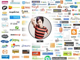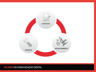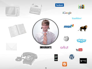 O documento discute o volume de informação nas redes sociais e mídias sociais, como as pessoas e empresas usam essas plataformas, e como as pessoas estão mudando junto com o mundo digital. Também fornece dicas sobre como usar as redes sociais de forma positiva e efetiva para comunicação e marketing.