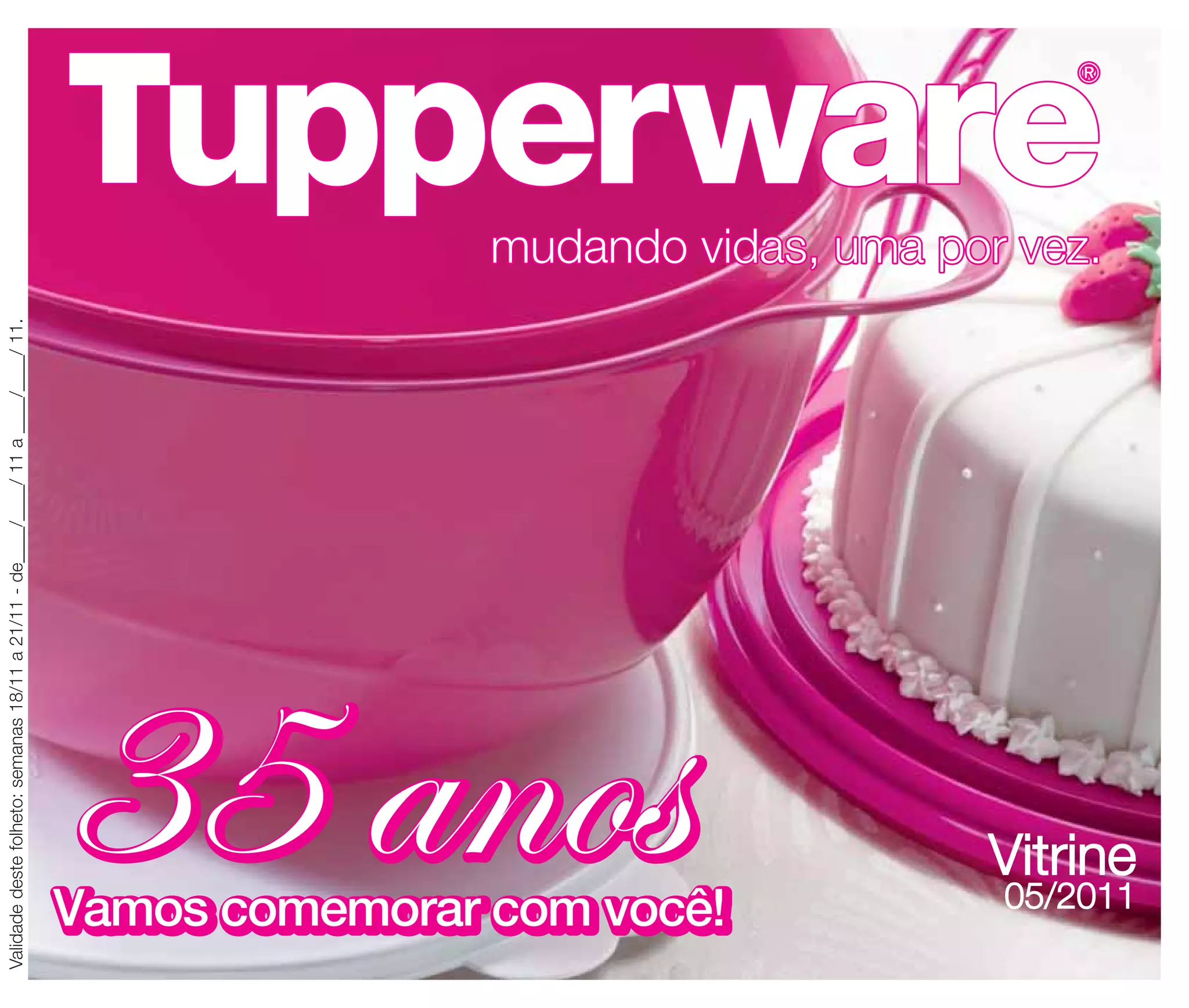 Este documento fornece informações sobre uma promoção da Tupperware válida entre 18 e 21 de novembro de 2011. O documento descreve os níveis do programa de indicação de novas anfitriãs (BEA), os prêmios de cada nível e os produtos em promoção para a comemoração de 35 anos da Tupperware no Brasil.