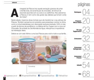 A edição de Páscoa da vitrine Tupperware destaca a celebração da data com dicas para o almoço em família e produtos decorativos exclusivos. Oferece promoções em itens, como recipientes para armazenamento e preparação de alimentos, enfatizando a importância da hidratação. O documento também inclui receitas e informações sobre os novos lançamentos, proporcionando uma experiência gastronômica rica e prática.