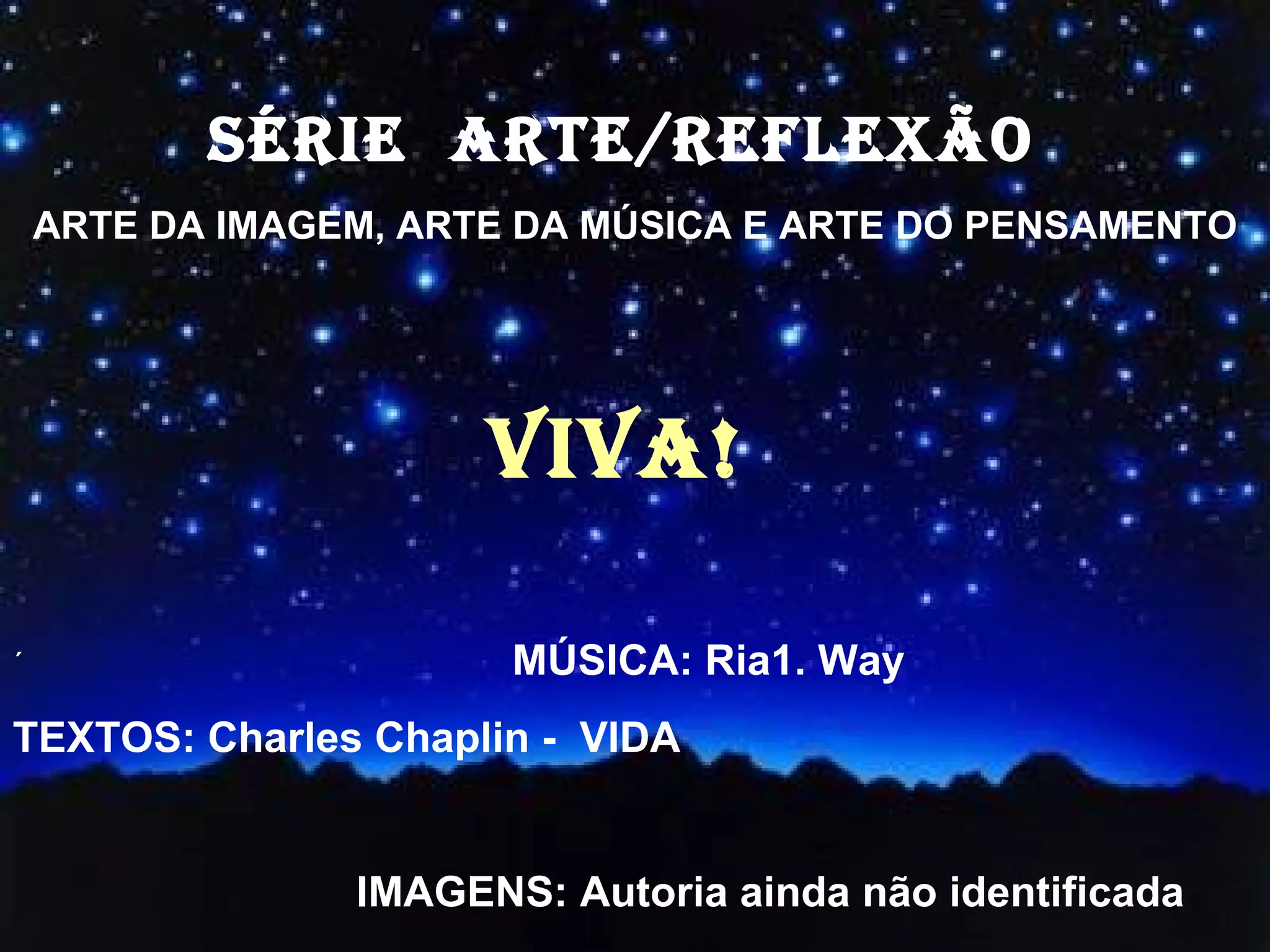 O documento apresenta imagens artísticas sem identificação da autoria, acompanhadas por uma música e textos de Charles Chaplin sobre a vida. Os textos refletem sobre experiências humanas como decepções, amores, perdas e a importância de viver com paixão. A inspiração é destacada como fator comum na arte da imagem, música e pensamento.