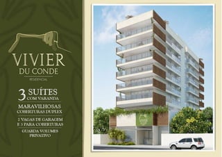 More com conforto e sofisticação em uma das melhores localizações da Gávea. A poucos instantes da praia e da Lagoa Rodrigo de Freitas. Apartamentos com 3 suítes e varanda; cobertura duplex com 4 suítes e varanda com vista para a Lagoa Rodrigo de Freitas. 14 apartamentos com 3 suítes de 127 e 139 m² 02 coberturas duplex com 4 suítes de 264 e 288 m² 02 vagas de garagem por apartamento 03 vagas de garagem por cobertura Lazer composto de: Salão de Festas Fitness Spa Playground Piscina