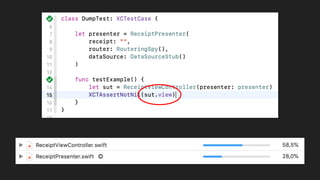 O documento discute técnicas de teste de software como cobertura de código, teste de mutação e a ferramenta Muter para teste de mutação em Swift. Apresenta como a cobertura de código não é suficiente para validação e como o teste de mutação funciona simulando mutações nos testes para verificar se eles conseguem identificar erros. A ferramenta Muter automatiza o teste de mutação para Swift.