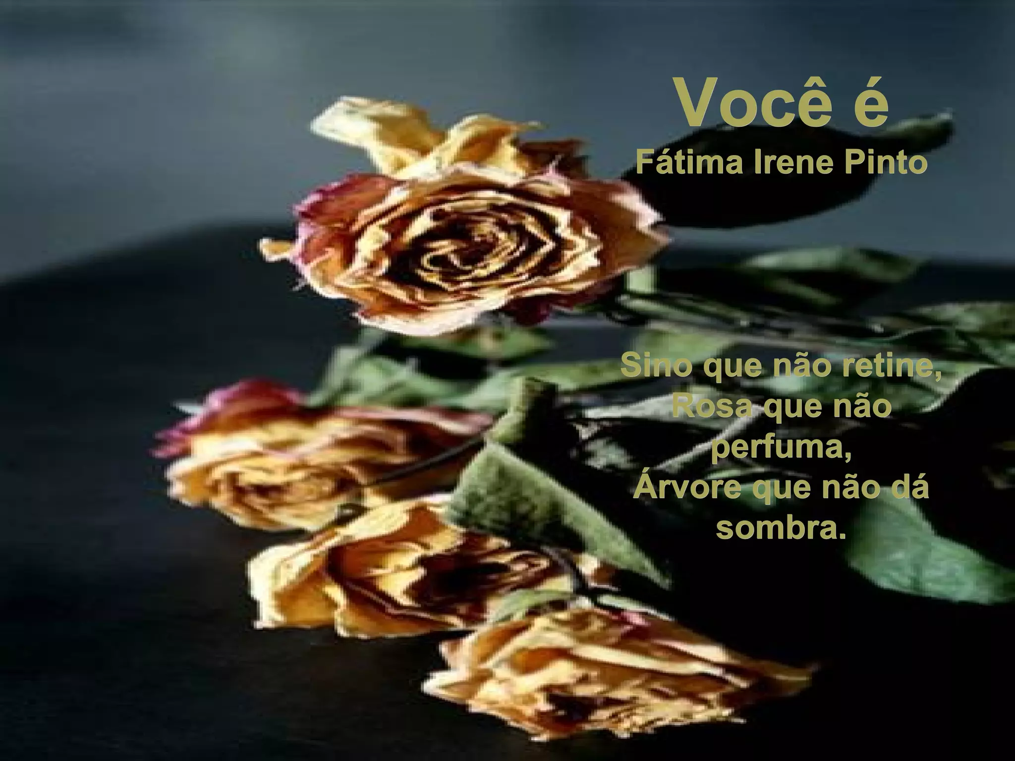 O poema descreve uma pessoa que inicialmente não traz benefícios ou alegria, comparando-a a uma árvore sem sombra ou flor sem perfume. No entanto, essa pessoa depois trouxe alegria e significado para a vida do autor, comparando-a a uma mão que traz vida, um espelho que reflete beleza e uma semente que germina no coração.