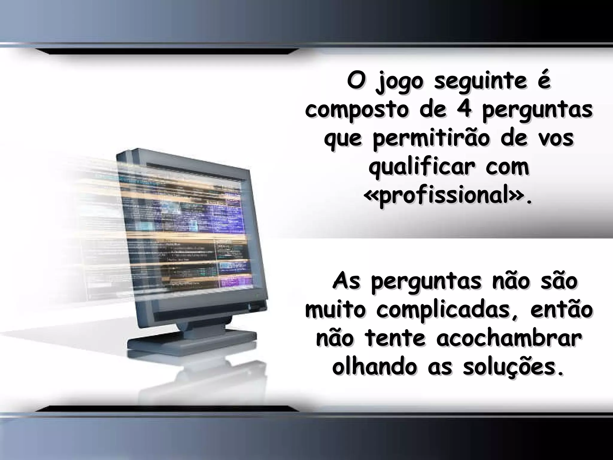 O texto descreve um teste fictício de 4 perguntas para avaliar a capacidade de raciocínio. As perguntas envolvem colocar animais em uma geladeira e a ausência de um elefante em uma palestra devido ao seu confinamento na geladeira anteriormente. O texto sugere que profissionais adultos geralmente falham no teste ao contrário de crianças pequenas.