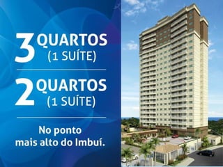 O documento descreve um novo empreendimento imobiliário no bairro do Imbuí, em Salvador, composto por duas torres com 20 andares cada. Cada torre terá apartamentos de 2 e 3 quartos, com áreas entre 63 e 76 m2, e uma vaga ou duas vagas por unidade. O condomínio contará com piscina, academia, brinquedoteca e outros espaços de lazer.