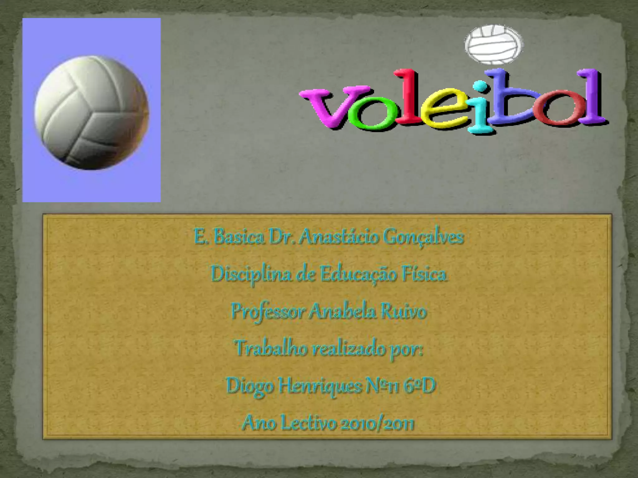 Este documento resume as principais regras e gestos técnicos do voleibol. Explica que cada equipe pode ter até 12 jogadores, 6 em campo e 6 reservas, e que o objetivo é enviar a bola por cima da rede para o campo adversário. Um jogo é vencido ao se ganhar 3 sets, onde cada set é vencido ao se fazer 25 pontos. Também descreve os gestos técnicos de passe, recepção e batida.