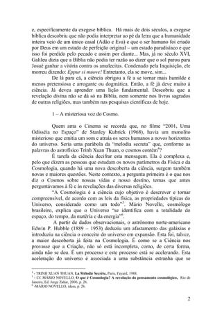 1) O documento discute as revelações da ciência moderna sobre o universo e a vida e como isso desafia as compreensões teológicas tradicionais.