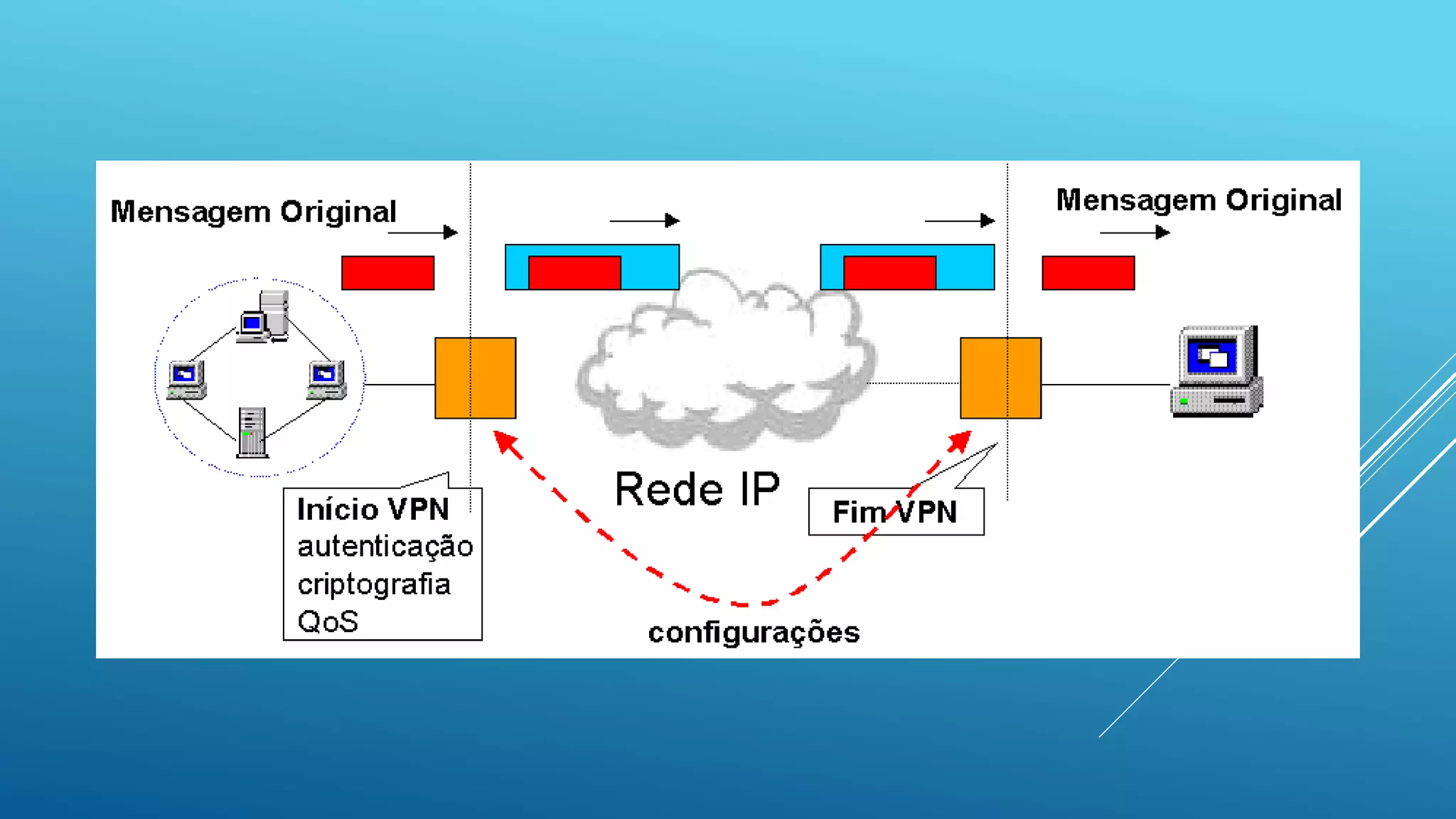 Uma VPN permite conexões seguras e privadas à internet pública através da criptografia de dados. Ela conecta redes privadas menores e evita censuras ou restrições regionais. Uma VPN funciona criando um "túnel" seguro através do qual os dados viajam criptografados entre dois pontos finais, prevenindo vigilância ou modificação.