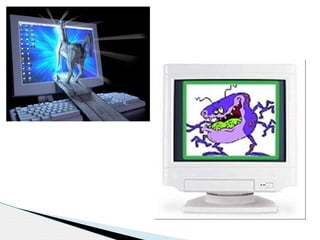 O documento discute vários tipos de ameaças de segurança cibernética como vírus, malware, hackers e medidas de proteção como antivírus e firewalls. Ele explica o que são vírus e seus diferentes tipos, como cavalos de Tróia, worms e time bombs. Também discute malware e spyware e a diferença entre hackers e crackers. Por fim, fornece recomendações sobre medidas básicas de segurança como manter softwares atualizados e usar antivírus e firewalls.
