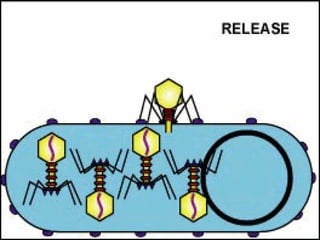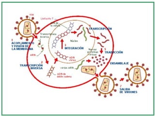 O documento descreve características e estruturas de vírus, incluindo que eles são parasitas intracelulares obrigatórios sem metabolismo próprio. Detalha também as estruturas virais capsídeo e material genético, e lista exemplos de vírus de DNA e RNA, além de doenças causadas.